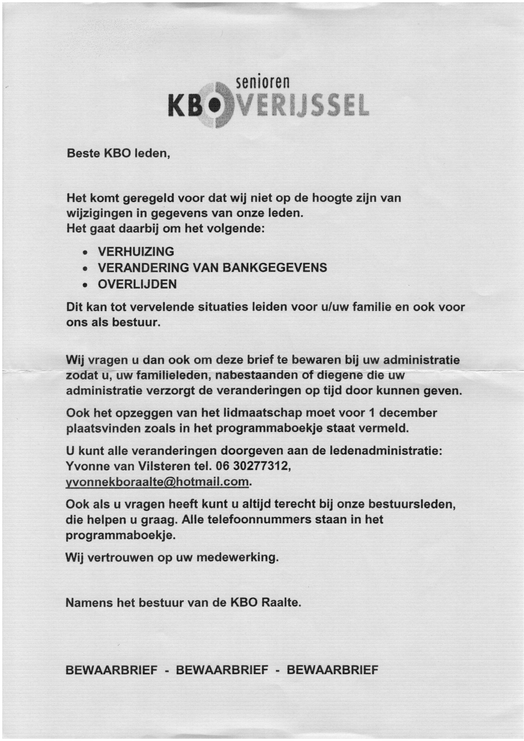 Bewaar deze brief bij uw administratie zodat ook anderen u eventueel kunnen helpen bij het wijzigen/opzeggen van uw lidmaatschap